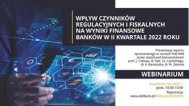 W kolejnych kwartałach sektor bankowy będzie zmagał się z wieloma zagrożeniami, których skala i możliwe skutki pozostają w dynamicznych warunkach trudne do oszacowania – piszą autorzy raportu „Wpływ czynników regulacyjnych i fiskalnych na wyniki finansowe banków w I kwartale 2022 roku” zrealizowanego w ramach Programu Analityczno – Badawczego Warszawskiego Instytutu Bankowości, który będzie zaprezentowany w czwartek, 7 lipca podczas webinarium transmitowanego na stronach aleBank.pl.