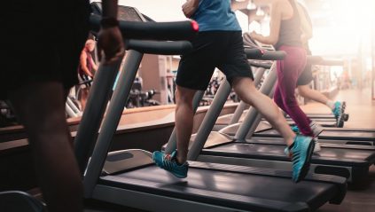 klienci w klubie fitness, bieżnie