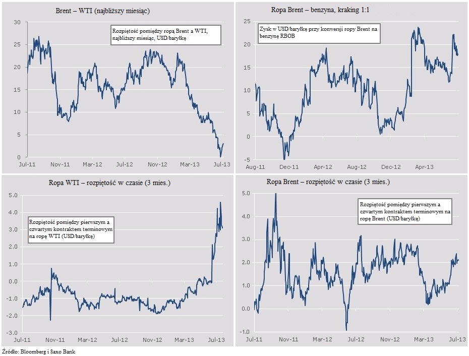 W efekcie, również przy stagnacji cen ropy Brent, rozpiętość cenowa ropy Brent i WTI powróciła do parytetu w zeszłym tygodniu przed ponownym odbiciem. Długoterminowy cel tej rozpiętości determinowany jest przez koszt transportu ropy rurociągiem i koleją z produkcji kontynentalnej i z obszarów magazynowych do rafinerii na wybrzeżu, dlatego na tej podstawie można przewidywać utrzymanie się przewagi premii Brent nad WTI w średnim okresie.